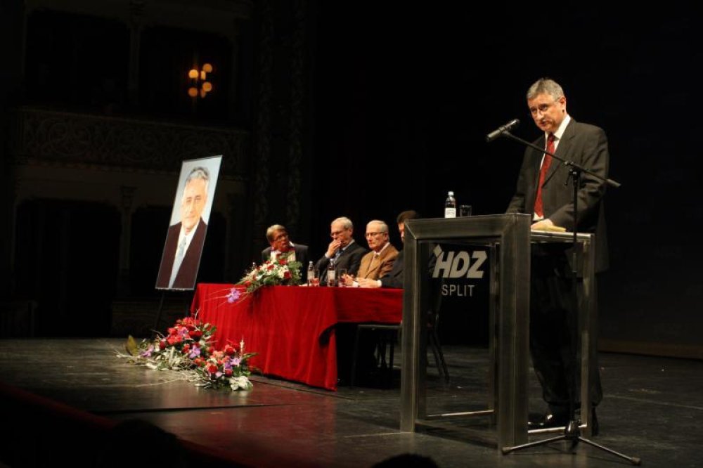 U splitskom teatru tražila se karta više, HDZ je želio demonstrirati upravo teatralan povratak baštini Franje Tuđmana: prvog hrvatskog predsjednika Karamarko je usporedio s Churchillom, Adenauerom i Havelom, a šef splitskog HDZ-a Petar Škorić s De Gaulleom, Bismarckom i Washingtonom.