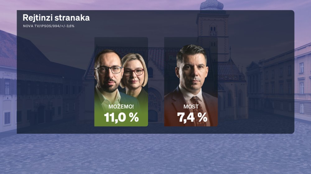 Na tronu se ništa ne mijenja. HDZ je i dalje vodeća stranka s 28,3 posto podrške birača. SDP je drugi s podrškom od 19,6 posto ispitanika. Zadnja tri mjeseca bilježi lagani pad i sada je na najnižoj razini u posljednjih 12 mjeseci. Slijede Možemo s 11,0 posto. Most je na 7,4 posto. Oni su tri mjeseca zaredom u pozitivnom trendu.