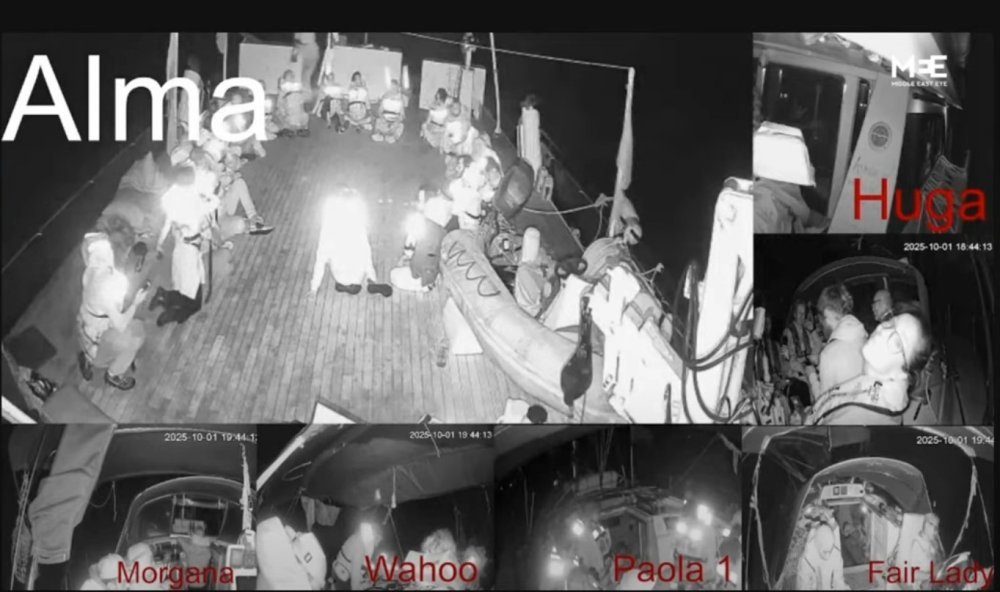 19:50 Organizatori uživo objavljuju video konvoja, a na njemu se vidi da su članovi posade jednog od brodova, koji se zove Alma, sjede na pramcu broda, a čini se da nose prsluke za spašavanje, što je, kako objašnjava organizator, uvježbani protokol prema kojem se postupa kada se očekuje presretanje.