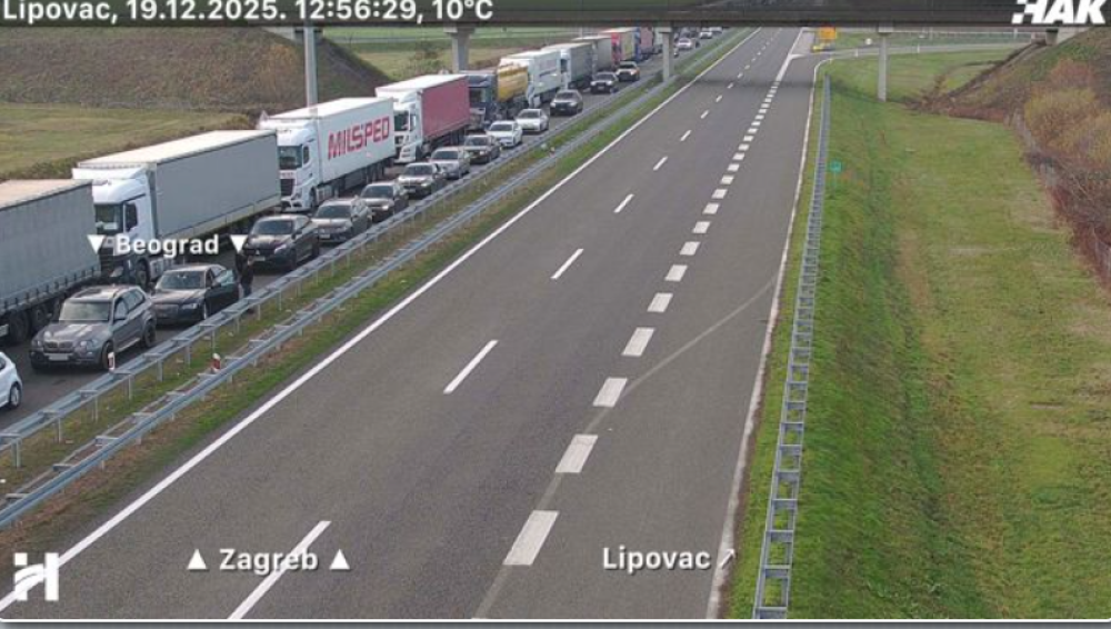 - na autocesti A3 Bregana-Lipovac pred graničnim prijelazom Bajakovo u smjeru istoka kolona osobnih i teretnih vozila duga je oko osam kilometara.
