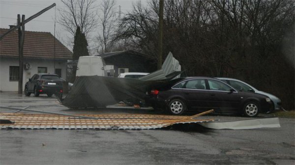 Kako javlja policija, 4. veljače oko 13 sati, u Bošnjačkoj ulici u Županji olujni vjetar podignuo je i porušio limeni krovni pokrov s krovišta zgrade županjske tvrtke u kojoj su smješteni uredi špediterskih tvrtki. Vjetar je odbacio limeni pokrov na parkiralište ispred zgrade uslijed čega je oštećeno 11 parkiranih vozila: sedam osobnih automobila županjskih registracijskih oznaka i četiri teretna vozila stranih registracijskih oznaka.