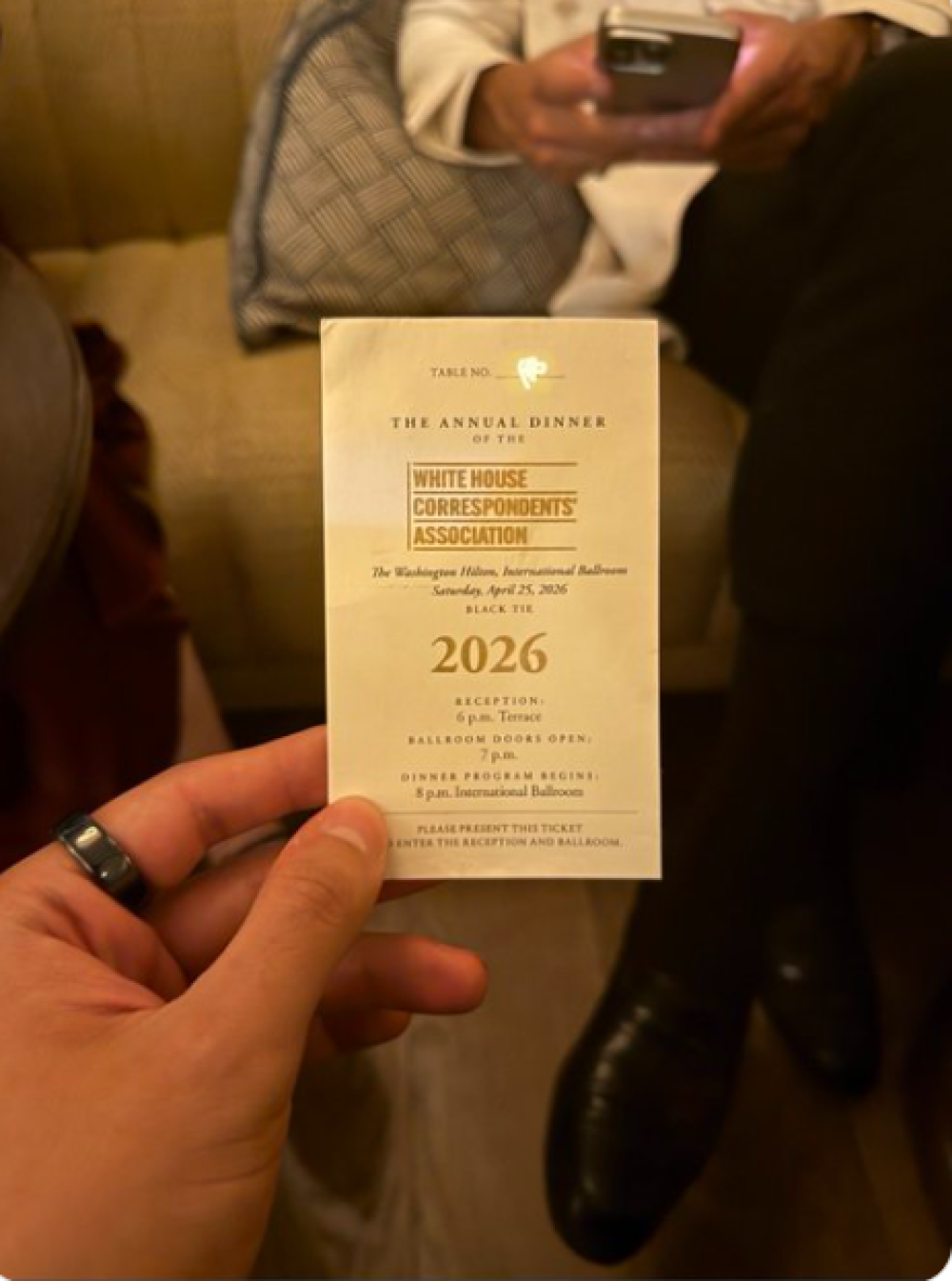 Unatoč tome, osumnjičenik sa sačmaricom i drugim oružjem uspio je stići do prostora samo kat iznad plesne dvorane u Washingtonu gdje je večerala izvanredna koncentracija članova administracije, visokorangiranih zastupnika i poznatih osoba. Uz Trumpa su bili potpredsjednik J. D. Vance, državni tajnik Marco Rubio, šef Pentagona Pete Hegseth, državni odvjetnik Todd Blanche, ministar financija Scott Bessent, ministar unutarnjih poslova Doug Burgum i drugi vladini dužnosnici, mnogi i s vlastitim osiguranjem.