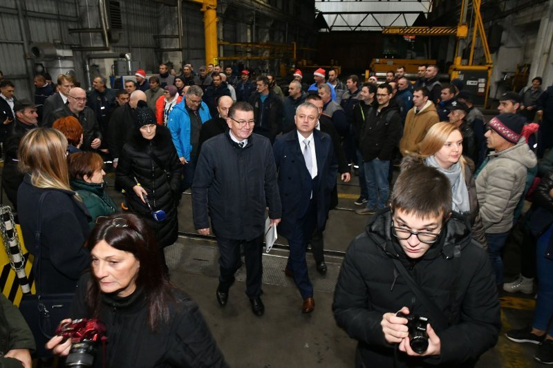 [FOTO] Štrajkaši u Đuri Đakoviću proveli ministra Horvata kroz tvornicu, sve je puno razmontiranih tenkova i Patria