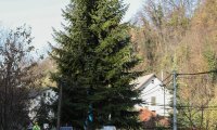Jučer su radnici Zrinjevca posjetili vlasnika 20-metarskog bora u ulici Graberje u Zagrebu, koji ga je donirao. Stablo su radnici Zrinjevca sigurno i uspješno posjekli, a zastoj prometa trajao je četiri sata.