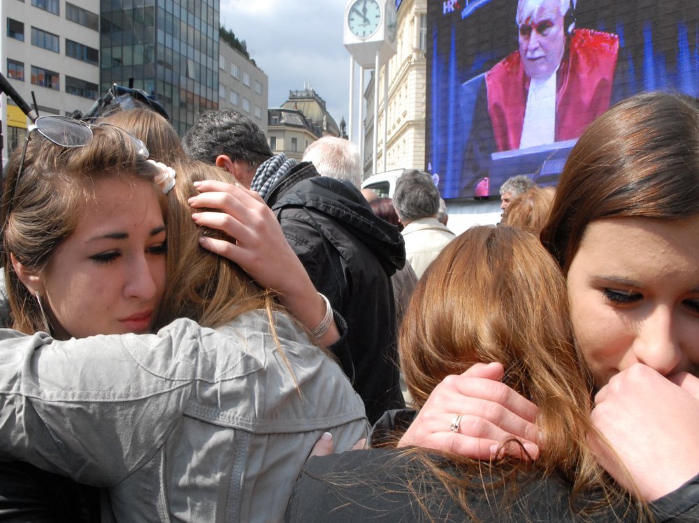 Šok, nevjerica, suze, ogorčenost pa bijes. Ti redoslijedom miješale su se emocije kod oko dvije tisuće okupljenih ljudi na Jelačić placu u Zagrebu, kada je deset minuta do podneva sudac Haškog tribunala Alphonse Orie izrekao presude generalima Markaču, Gotovini i Čermaku