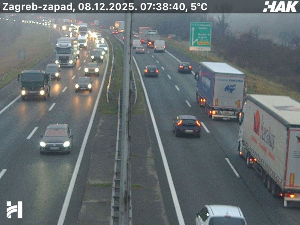 Vozi se usporeno u koloni u pokretu zbog gustog prometa na A4 Goričan-Zagreb, između Sesveta i čvora Zagreb istok u smjeru Zagreba, te na autocesti A3 Bregana-Lipovac, između čvorova Zagreb zapad i Lučkog u smjeru Lipovca