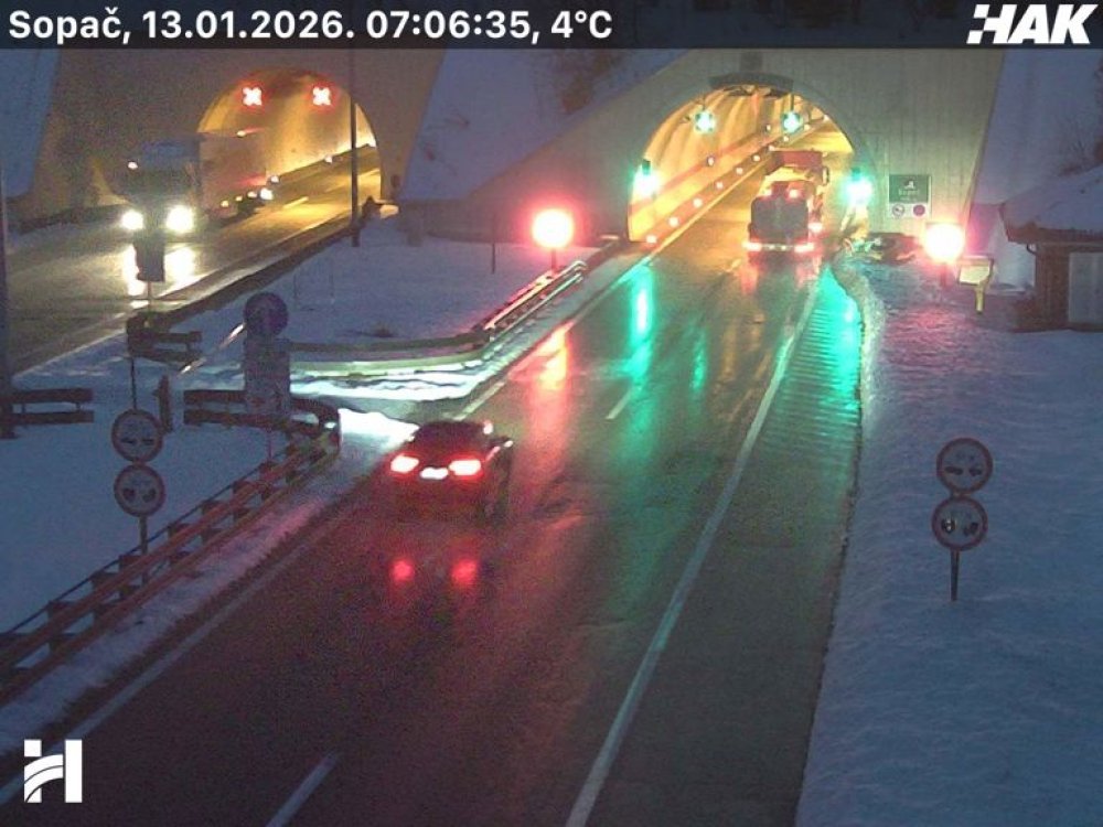 U tijeku je čišćenje i posipavanje kolnika, a na pojedinim dionicama cesta vozi se usporeno zbog vozila zimske službe koja se kreću sporije.