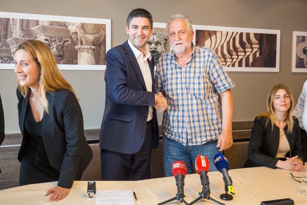 Predsjednici Gradskog odbora HDZ Dubrovnik Mato Franković, Dubrovačke stranke (DUstra) Željko Raguž i Dubrovačkog demokratskog sabora Pero Vićan potpisali su u petak u Dubrovniku koalicijski sporazum o uspostavljanju većine od 16 mandata u dubrovačkom Gradskom vijeću