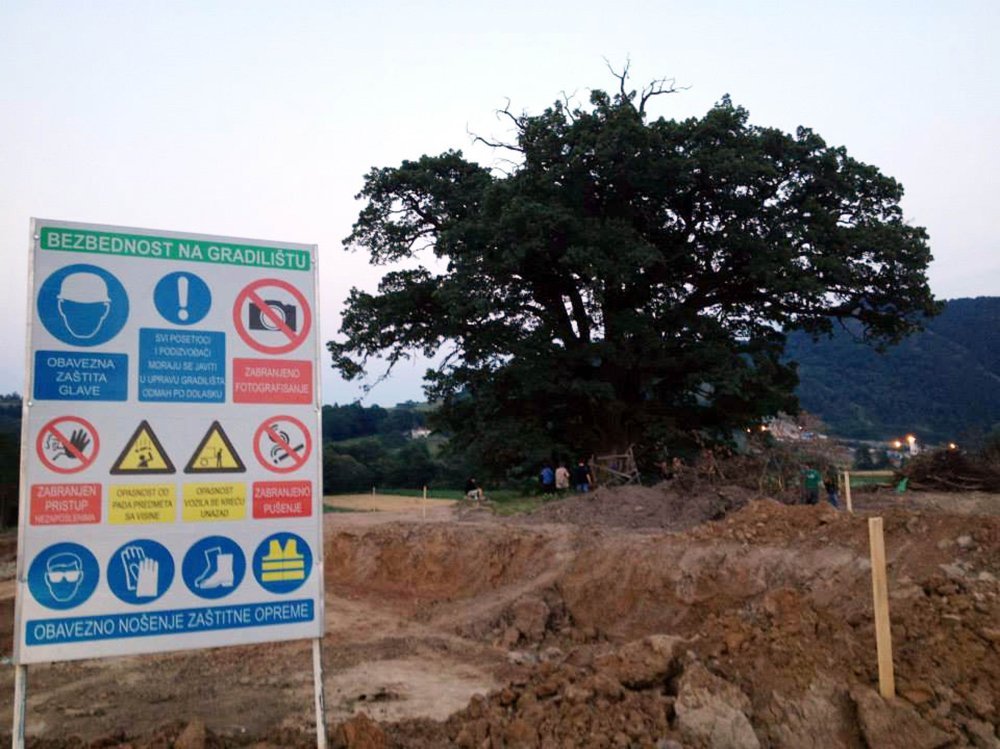 Ministar urbanizma i građevine Srbije Velimir Ilić je ranije izjavio da je nemoguće izbjeći stablo zbog toga što bi se morao izvoditi zavoj prije tunela, pa stablo neće moći ostati na svom mjestu. Ilić je predložio da se hrast koji u korijenu ima više od 30 metara prenese na drugu lokaciju.