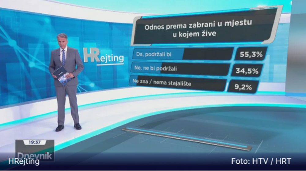 Na pitanje bi li podržali odluku grada ili općine u kojoj žive o zabrani koncerata kojima se potiču ustaški simboli i pozdravi u javnim prostorima, većina ispitanika, njih 55%, odgovorila je potvrdno. Takvu odluku ne bi podržalo 34% anketiranih, dok 9% nema jasan stav o tome.