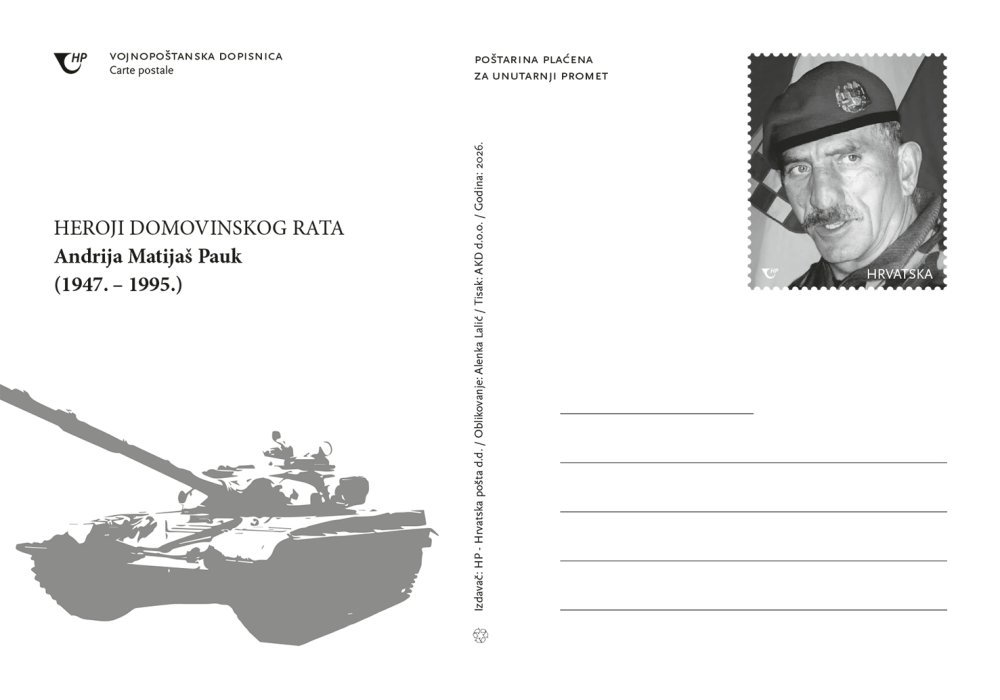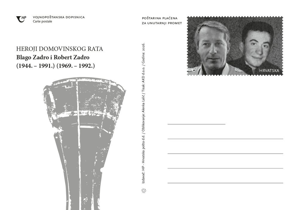 Na četiri dopisnice prikazani su likovi nekih od najzaslužnijih hrvatskih branitelja.Na prvoj seriji dopisnica u 2026. godini prikazani su Blago i Robert Zadro, Jean-Michel Nicolier, Andrija Matijaš Pauk i Rudolf Perešin.