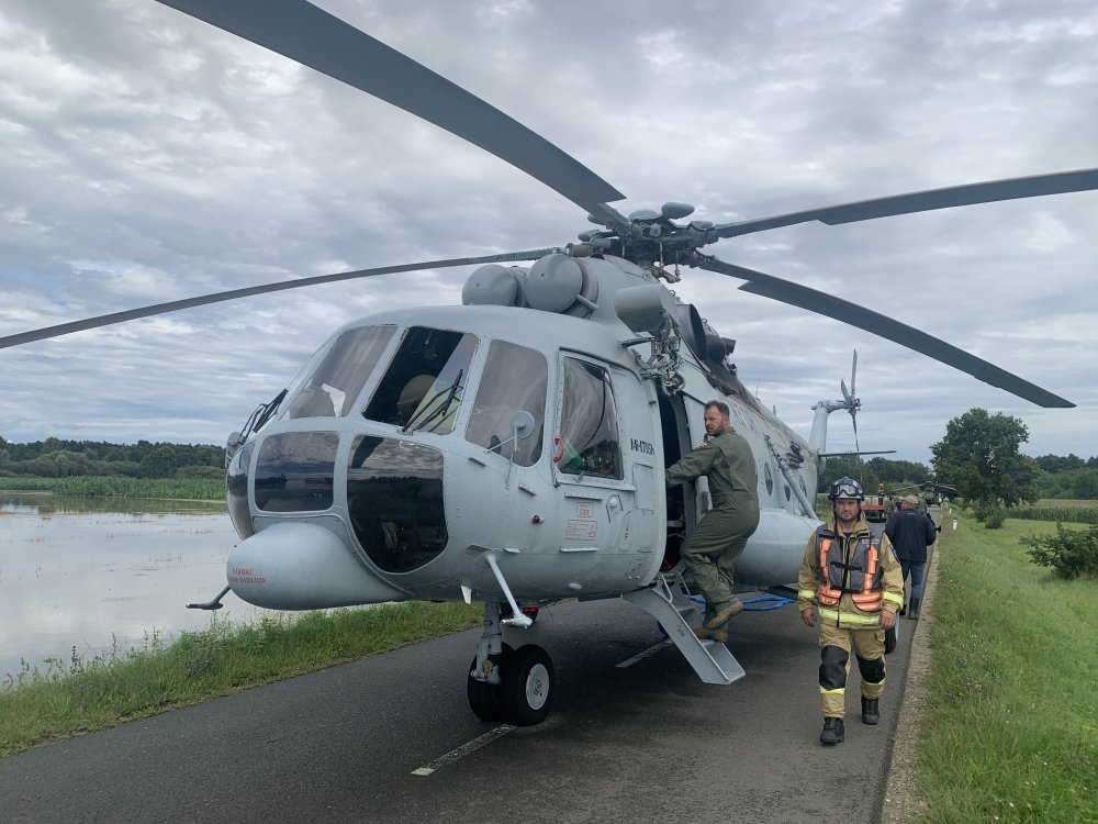 Naime, jedan helikopter Hrvatskog ratnog zrakoplovstva Mi-171Sh i osam pripadnika Hrvatskog ratnog zrakoplovstva sudjelovali su u nedjelju 6. kolovoza 2023. u mjestu Donja Bistrica kod Lendave na aktivnostima prenošenja betonskih blokova za stvaranje barijera za suzbijanje poplava.