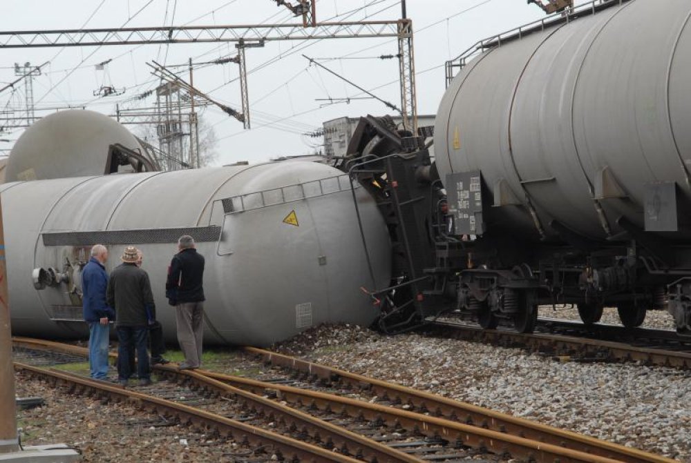 Hrvatske željeznice priopćile su da su danas u 10.05 sati u kolodvoru Slavonski Brod iz tračnica iskliznule tri cisterne natovarene melasom, od kojih se jedna prevrnula