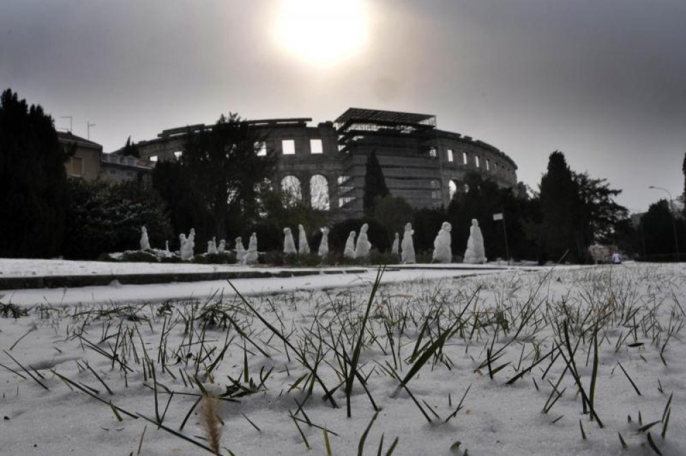 Snijeg je noćas ipak zabijelio jug Istre. Najsnažnije je padao oko 3 sata u noći pa su pod bijelim pokrivačem jutro dočekali Medulin, Pula i Vodnjan. Snijeg je padao uz za Istru vrlo niske temperature zraka pa je tako prema podacima Istrameta na području Pule zabilježena temperatura -5, a u Medulinu -6