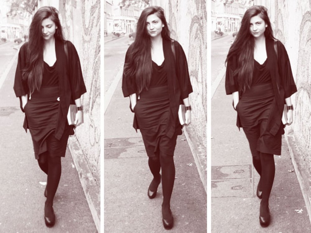 kimono: no name/Japan, suknja: Gap, sat: Calvin Klein, cipele: Kobe&Husk