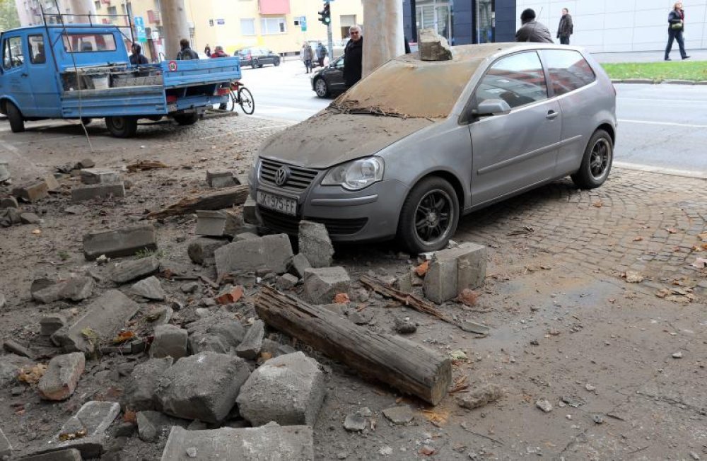 'Čuo se prasak. Pogledali smo kroz prozor, a na parkiranom autu bili su kameni blokovi koji su se odlomili sa zgrade. Srećom, nitko se nije ozlijedio. Ljudi su u panici trčali kako bi vidjeli čiji je auto oštećen. Ubrzo je stigla i policija', ispričala je čitateljica 24sata Ivana Pojatin. Materijalnu štetu još nisu procijenili, a ostataka fasade i komada drvene grede bilo je posvuda.