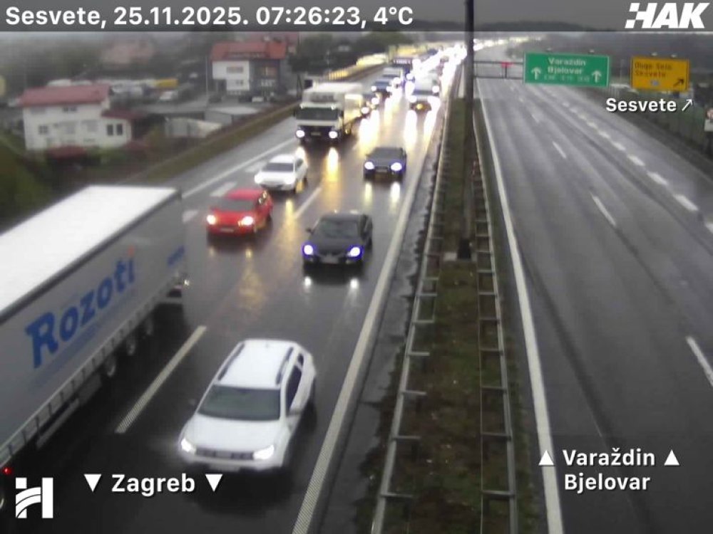 Na autocesti A4 Goričan-Zagreb, između čvorova Sesvete i Zagreb istok, u zoni radova u smjeru Zagreba, vozi se jednim trakom u koloni od četiri kilometra, a na zagrebačkoj obilaznici (A3), između čvorova Zagreb zapad i Lučko, u smjeru Lipovca vozi se usporeno uz povremene zastoje
