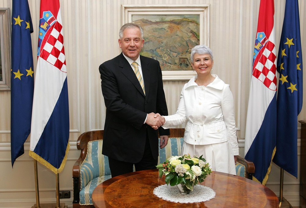 Jadranka Kosor se sa Sanaderom sastala nešto iza 10 sati u Vladinom plavom salonu iza zatvorenih vrata.
