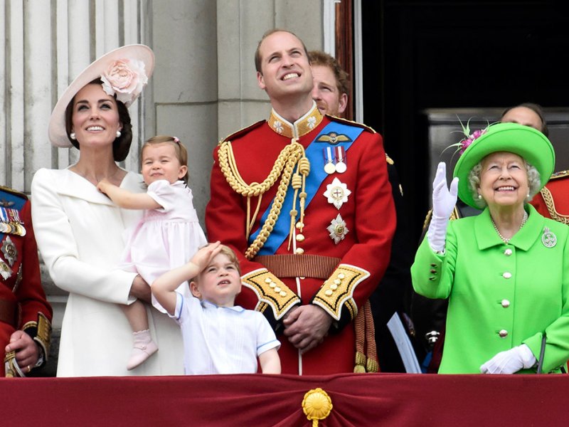 Kraljevska obitelj, s kojom se prvi put pojavila i mala princeza Charlotte rođena u svibnju 2015., promatrala je zatim kraći aeromiting s balkona Buckinghamske palače.