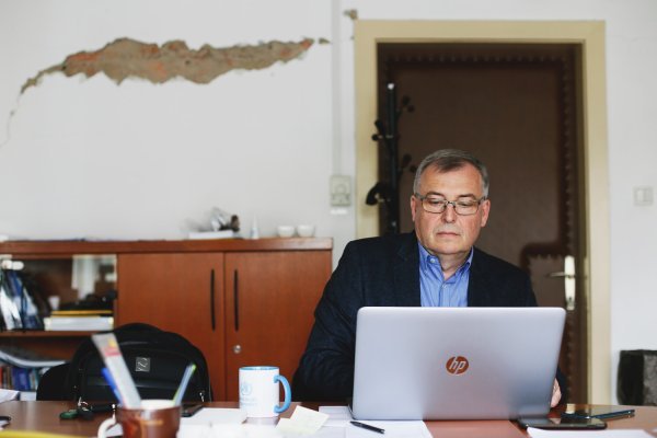 Zgrada HZJZ-a na svakom metru podsjeća na 22. ožujka, dan velikog zagrebačkog potresa. I u Capakovu uredu raspucani su zidovi, fotografije s dužnosnicima popadale su tog dana i još nisu vraćene.