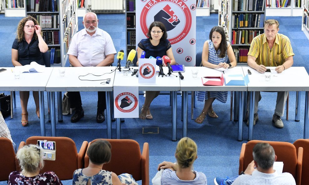 Građanska inicijativa Lex franak predstavila je u utorak prijedlog zakona o ništetnosti ugovora o kreditu s valutnom klauzulom u švicarskim francima kojim bi se riješio problem 125.000 obitelji s takvim kreditima te pozvala političare da ga podrže kako bi se usvojio u Saboru