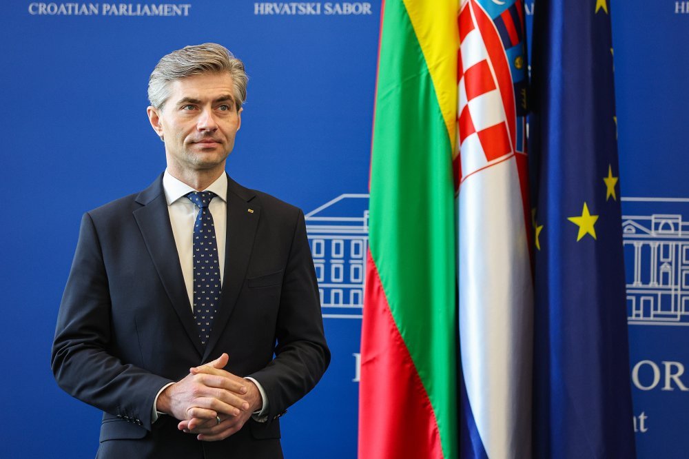 Ministar te baltičke zemlje službeno boravi u Zagrebu, gdje ga je ugostio ministar vanjskih i europskih poslova Gordan Grlić Radman, koji mu je uzvratio da je “Hrvatska kao i Litva čvrsto posvećena političkoj, materijalnoj pomoći i humanitarnoj pomoći Ukrajini”.