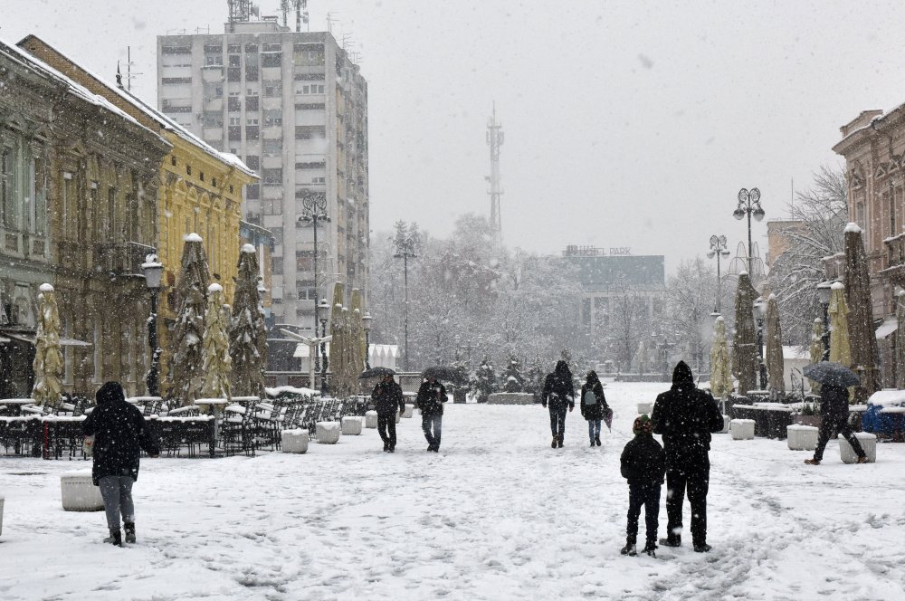 Prognoza DHMZ-a kaže d aće danas biti oblačno, vjetrovito i razmjerno hladno. Na Jadranu mjestimična kiša, u Dalmaciji i jači pljuskovi s grmljavinom. Na kopnu susnježica i snijeg, ponegdje uz snježni pokrivač, u gorju i deblji. Snijega nošenog vjetrom može biti i duž obale. Vjetar umjeren do jak sjeverni i sjeveroistočni, na istoku sjeverozapadni.