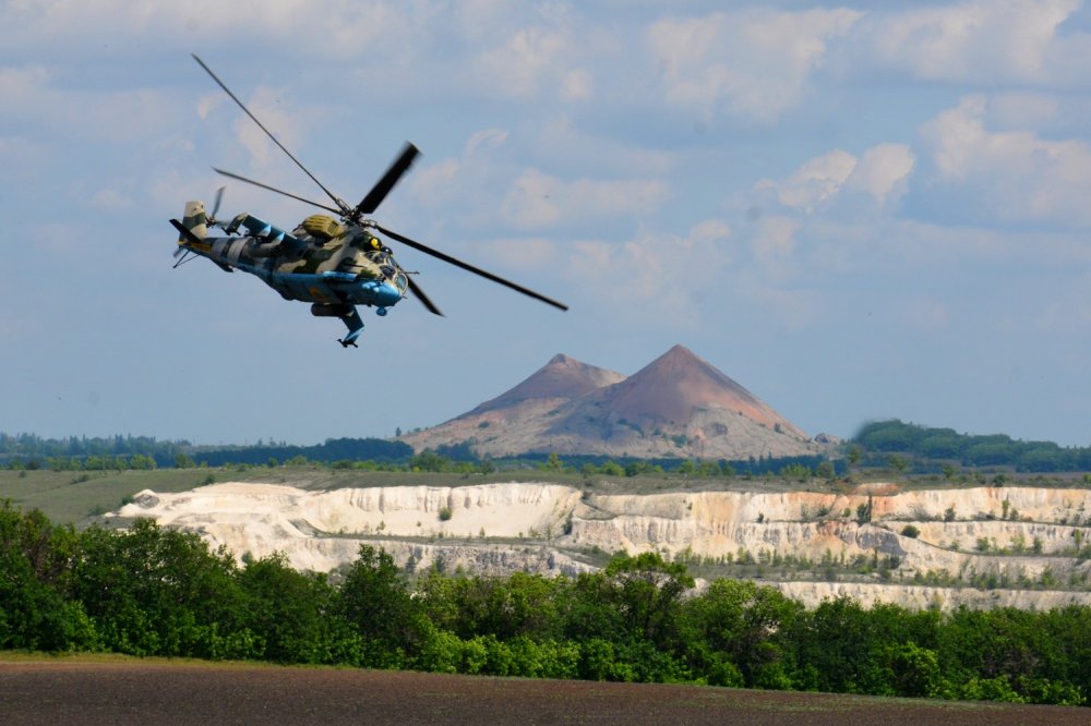 Flota helikoptera Hind, s kojom je ukrajinsko ratno zrakoplovstvo započelo sukob, najviše je sadržavala inačicu Mi-24P Hind-F, naoružanu topom kalibra 30 milimetara, a zatim i Mi-24V Hind-E s prepoznatljivom četverocijevnom teškom strojnicom kalibra 12,7 milimetara, smještenom u kupoli ispod nosa. Također, korišten je znatno manji broj letjelica Mi-24VP, podvarijante Hind-E s dvostrukim topom kalibra 23 milimetra, a koja je imala jači udarni učinak u fleksibilnom nosnom nosaču.
