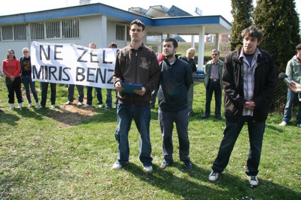 Mladi su uz transparente s tekstom "Ne želimo miris benzina" i "Stvarno nije u redu" pred tridesetak okupljenih stanara i novinara izrazili nezadovoljstvo proširenjem benzinske crpke i razinom, kako su rekli, neodgovornosti Ine i lokalnih vlasti prema građanima.