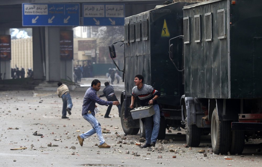 Egipatski predsednik Hosni Mubarak u svom obraćanju naciji kazao je i da Egipat treba biti svjestan nestabilnosti diljem zemlje te da su antivladini protesti dio zavjere da se destabilizira Egipat i uništi legitimitet njegove vlade. Otuda upotreba policije i vojske u neredima koji su izbili na ulicama egipatskih gradova.