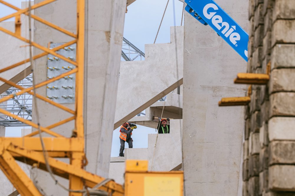 Dok autodizalica podiže materijal na istočnu tribinu, nalazimo se s Igorom Sedlarom, glavnim inženjerom na gradilištu na kojem radove izvodi Strabag.