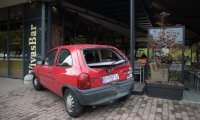 Nakon udarca kamiona zajedno s autom završila na terasi kafića