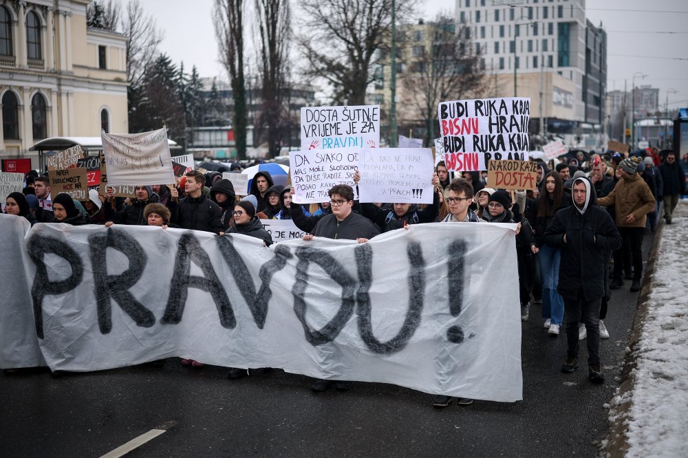 Stotine prosvjednika u srijedu su Sarajevu nastavili okupljanja potaknuta teškom prometnom nesrećom u kojoj je prošlog tjedna pri iskliznuću tramvaja s tračnica poginuo student te je teško ozlijeđena učenica, a ta je tragedija postala povodom žestokih napada oporbe na vlast