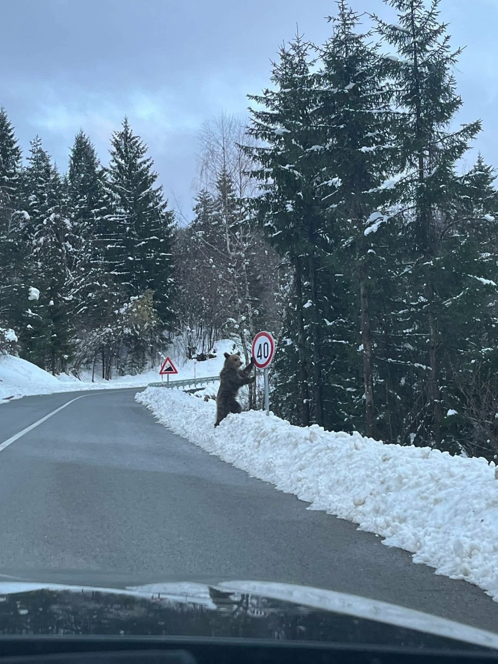 Na društvenim mrežama proširila se fotografija iz Gorskog Kotara na kojoj se vidi medvjed kako se naslanja na prometni znak uz cestu, što je mnoge nasmijalo, ali i iznenadilo.