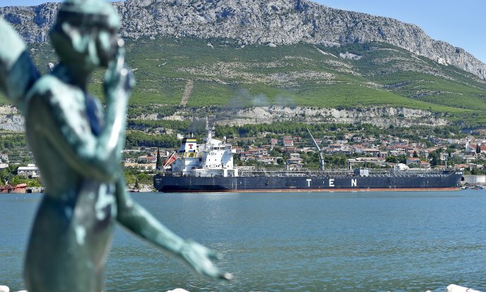 Služba traganja i spašavanja na moru Rijeka zaprimila je oko 23 sata dojavu peljarske službe da se tanker 'Byzantion' zbog jakog nevremena odmakao od operativne lučke obale u Splitskoj luci, pri čemu je otrgnuta cijev, navedeno je u priopćenju Ministarstva mora.
