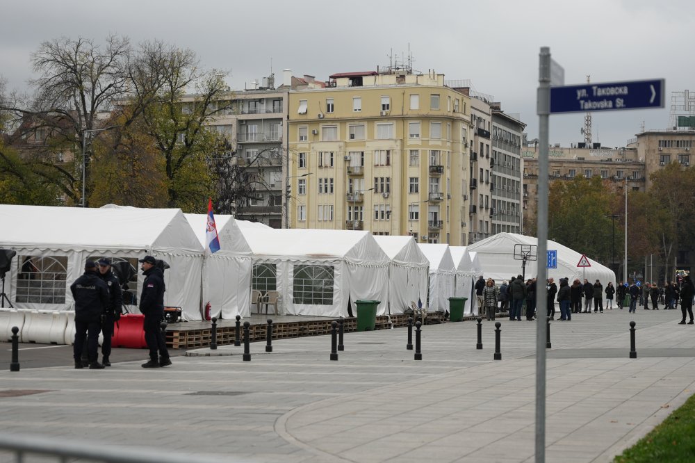 Naime, oporbeni zastupnici pokušavaju ući u zgradu Skupštine preko Pionirskog parka, odnosno šatorskog naselja pristaša SNS-a koje u žargonu zove Ćacijima.