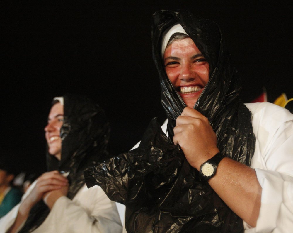 Razbarušene sijede kose, Benedikt XVI. je pričekao nekoliko trenutaka da se oluja smiri, dok su se pod naletima vjetra rušile stolice oko golemog oltara dugog 200 metara.