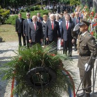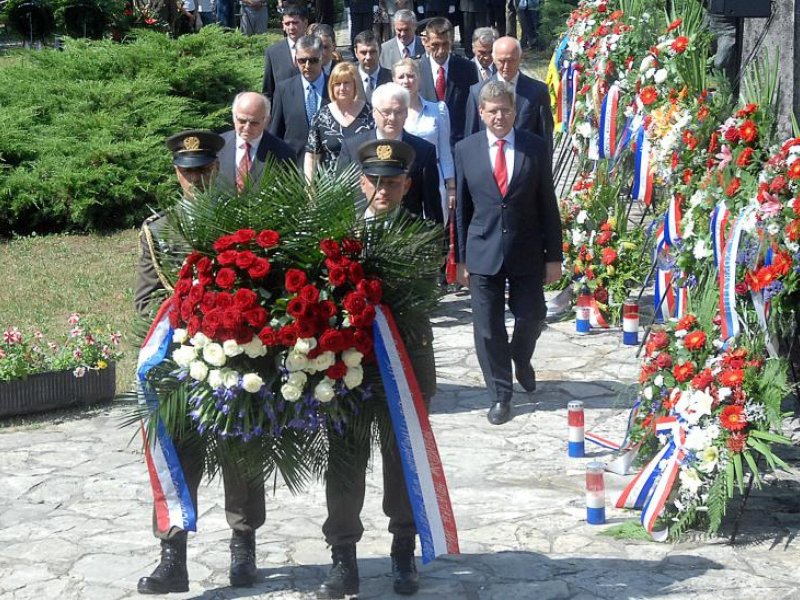 Zajednički vijenac državnoga vrha prvi su položili hrvatski predsjednik Ivo Josipović, predsjednik Hrvatskog sabora Josip Leko te izaslanik predsjednika Vlade ministar rada i mirovinskog sustava Mirando Mrsić.