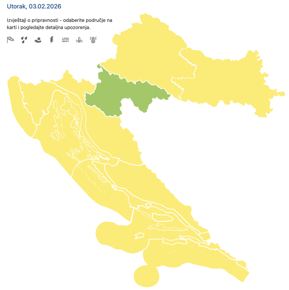 Utorak će obilježiti južina, češta kiša i blago zatopljenje, ali i opasnost od poledice na kopnu u noći i rano ujutro