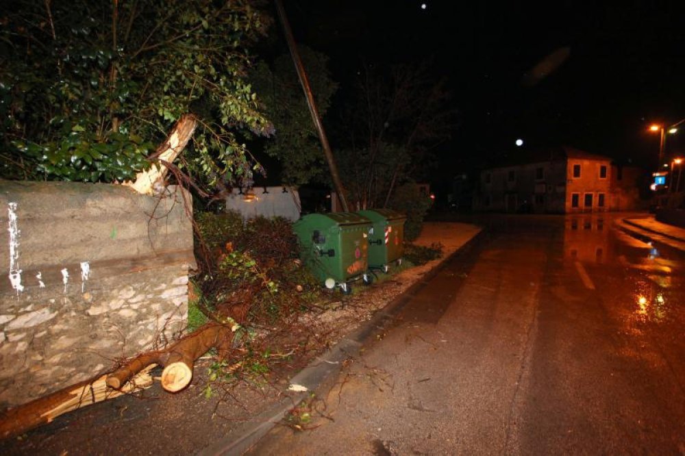 Orkansko jugo jučer je stvaralo velike probleme Zadranima. Na ulazu u predio Arbanasi snažni udari vjetra su srušili stablo bora koje je pri padu zakačilo telekomunikacijski kabel i spustilo ga vrlo blizu tla