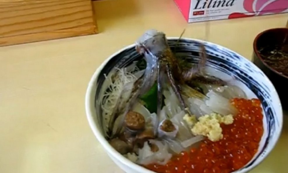 Bez panike - hobotnica servirana nad tanjurom sushija nije živa - micanje mišića izaziva prelijevanje soja-sosom koji je bogat natrijem. A nakon maloga "plesa" za gladne goste, kuhar nosi hobotnicu iz zdjele i priprema je na nimalo uzbudljiv, tradicionalan način.