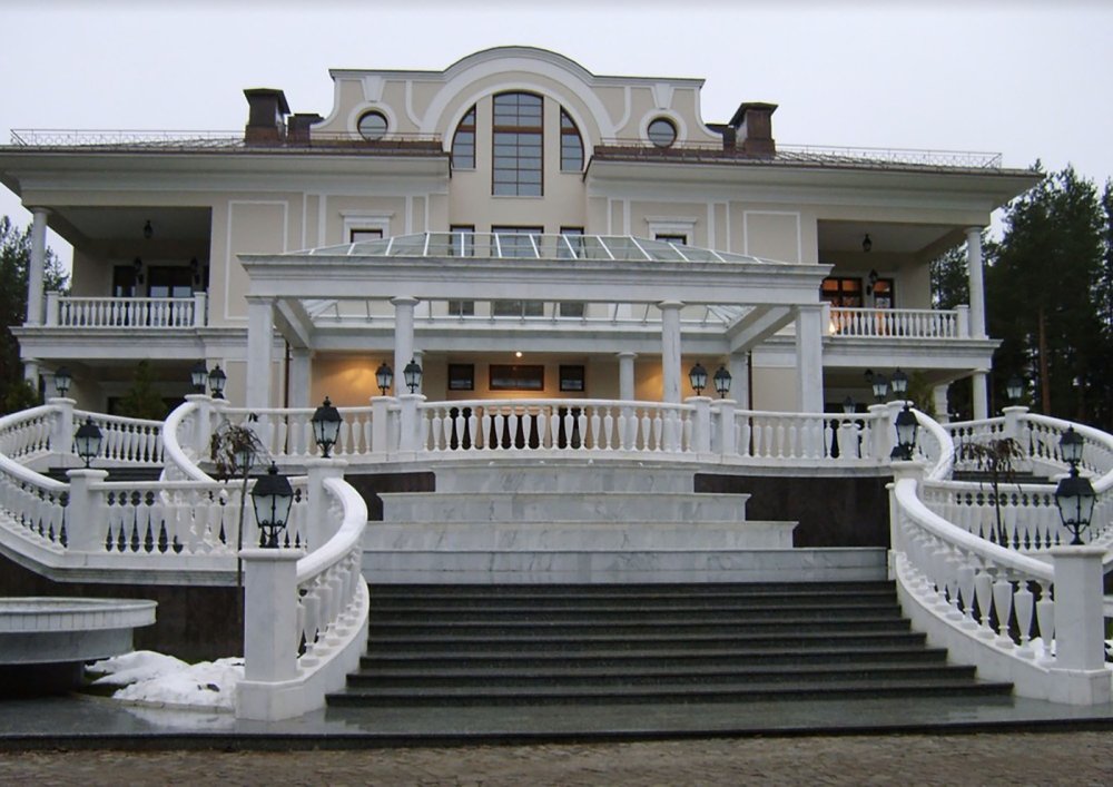 Glavna kuća na imanju opisana je kao 'relativno skromna': ima četiri kata i prostire se na oko 3.500 kvadratnih metara. Osim nje, kompleks obuhvaća brojne dodatne objekte — kineski paviljon za goste, drvene kolibe, restoran, pivnicu, sjenice, kupališta te dječje igralište. Na posjedu se nalazi i crkva posvećena Svetom Vladimiru.
