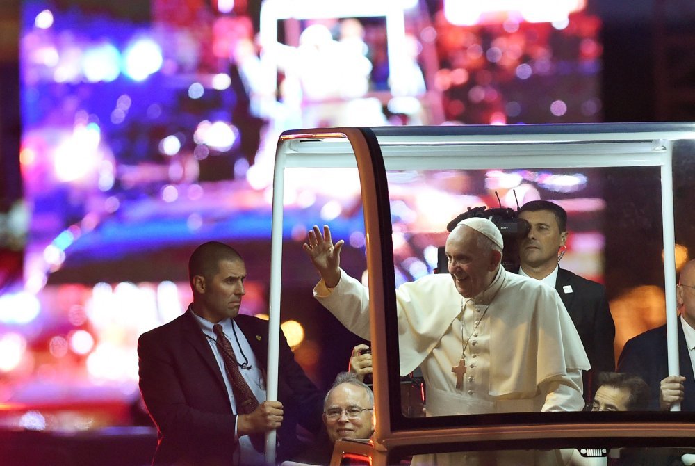 Stigavši u papamobilu praćen oduševljenjem stotina tisuća okupljenih duž velike prometnice grada, papa Franjo je poljubio djecu i blagoslovio beskućnike.