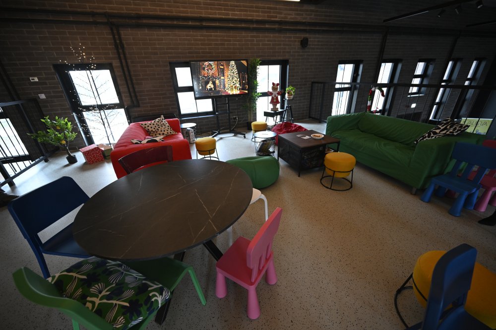 Sama zgrada, obnovljena s ciljem i uvjetom da pruži mladima nešto što do sada nisu imali, moderno je uređena u crnoj boji s ciglenim, industrijskim motivima, a široki prostori su rasprostranjeni na dvije etaže. Donja, koja je namijenjena različitim događajima i dnevni boravak gdje se također održavaju radionice ali su i općenito super mjesto za sjesti, razgovarati i družiti se sa vršnjacima. U manjim sporednim prostorijama, imaju i sobu za radio radionice i snimanje glazbe, kao i gaming sobu gdje se, uz prethodnu najavu i rezervaciju, mladi mogu okupljati i zajedno igrati igrice na PlayStationu 5.