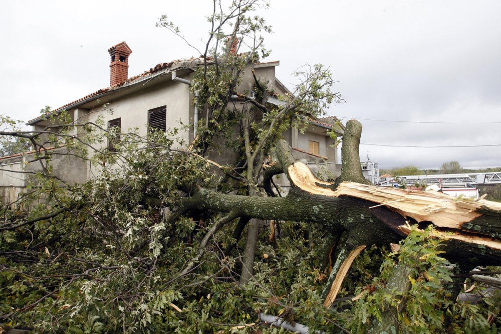 Kako nam je rekla gospođa Batel, rano jutros probudio ju je jaki huk pa je ustala i sišla u prizemlje taman kada je pijavica probila balkonski prozor, ušla u kuću, porazbacala stvari po kuhinji i dnevnom boravku, izbila pregradni zid od brodskog poda, porazbijala prozore u tim prostorijama i izašla na vrata od hodnika. Osim toga, srušila je i ogroman zdravi hrast u dvorištu i bacila ga na njihovu kuću, piše Glas Istre