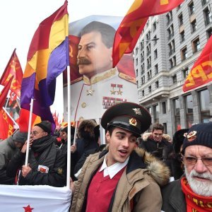Na ulicama Moskve u utorak su održana dva skupa - jedna na Crvenom trgu u čast 76. obljetnice odlaska Crvene armije na front u II. svjetskom ratu, i druga, ispred zgrade Dume, povodom 100. obljetnice Oktobarske revolucije i nastanka SSSR-a. Dok je na prvoj paradi vladala slikovitija, karnevalska atmosfera, drugu je organizirala parlamentarna Komunistička partija, uz podršku gostiju s Kube.