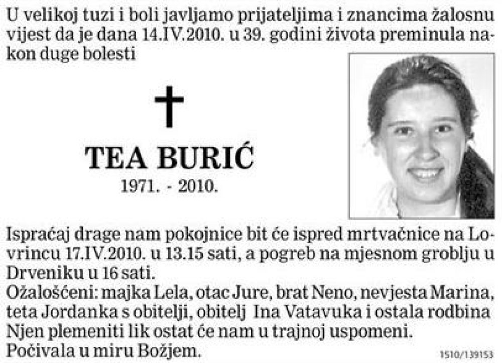 I tko zna bili ikada roditelji saznali da im je kćer živa da nije bilo dojave susjeda da u stanu u Držićevoj jedan muškarac tuče svoju partnericu. Nakon dolaska u taj stan policajci su zatekli muškarca i ženu koja je tvrdila da je ona Tea Burić