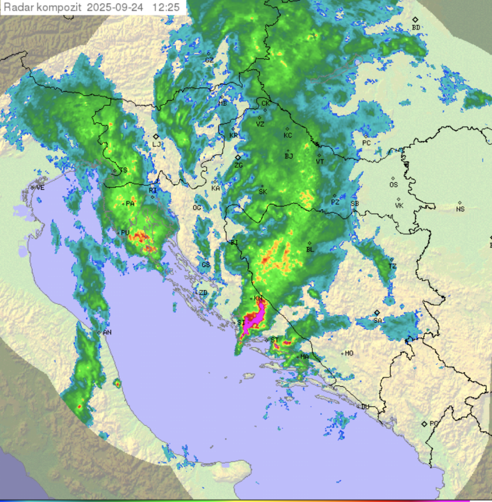 Nestabilno vrijeme koje je u utorak pogodilo sjeverni Jadran i zapadne krajeve unutrašnjosti u srijedu je stiglo i do Dalmacije.