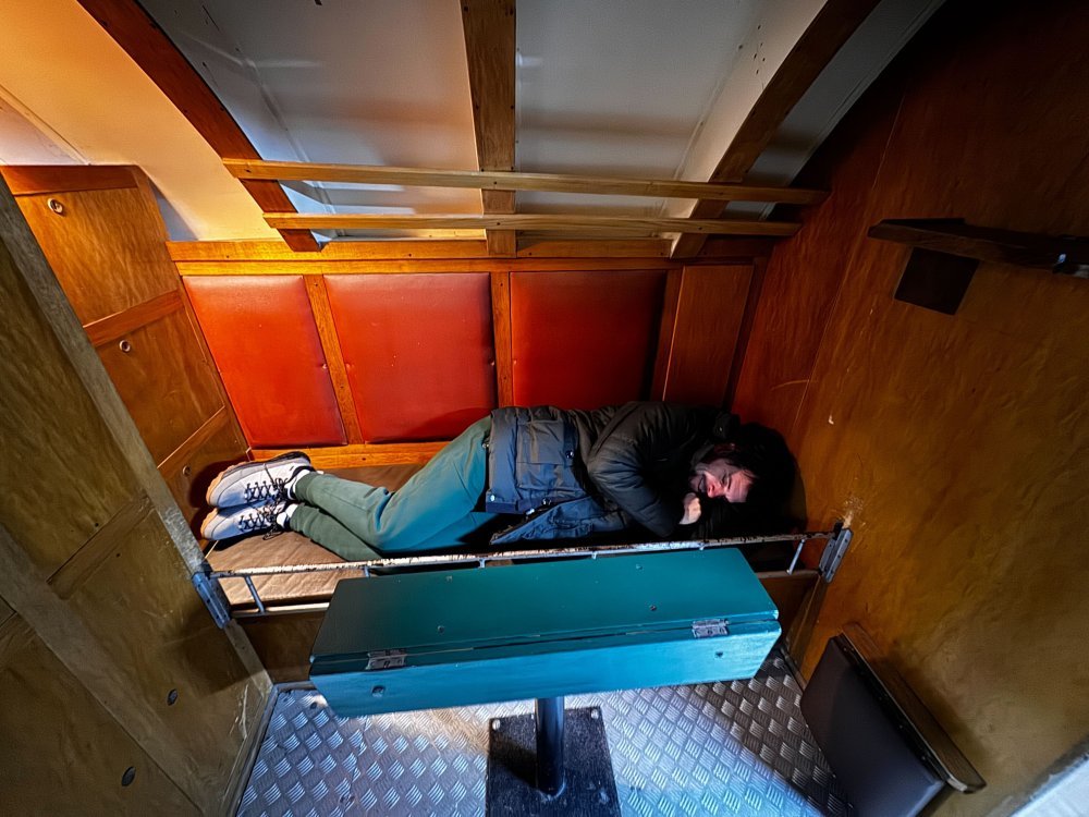 Posjet U-995 klaustrofobičnim osobama zasigurno izaziva strahovitu nelagodu, a i nama, koji nemamo taj problem, nije svejedno prolaziti uskim oknima, ležati na minijaturnim krevetima i pokušati shvatiti kako je u toj 'konzervi' bilo živjeti pod vodom.