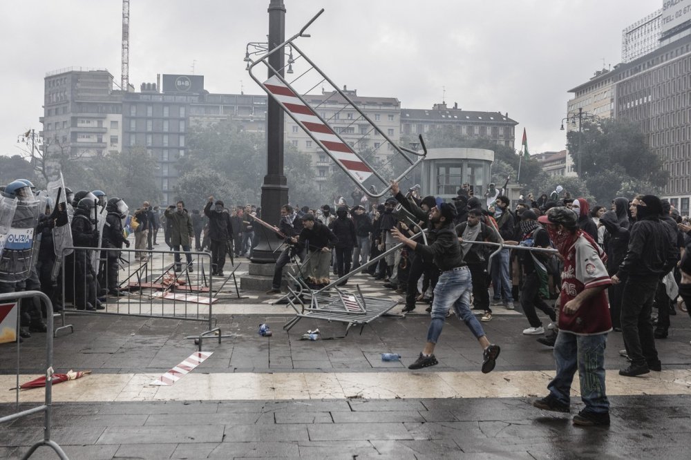 Skupina mladih ljudi odjevenih u crno pokušala je ući u podzemnu željeznicu Glavnog kolodvora u Milanu i naišla na otpor policije. Ulaz u kolodvor je uništen. Ozlijeđeno je oko šezdeset policajaca, od kojih je 23 već prevezeno u bolnicu. Desetak prosvjednika je uhićeno i odvedeno u policijsku postaju.
